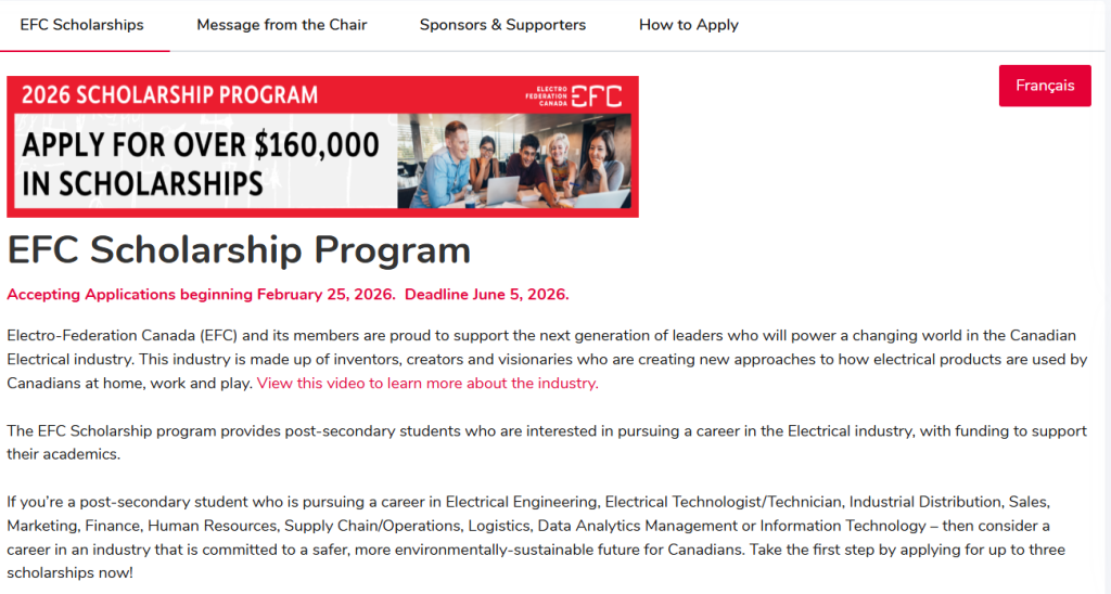 Electro-Federation Canada (EFC) and its members are proud to support the next generation of leaders who will power a changing world in the Canadian Electrical industry. This industry is made up of inventors, creators and visionaries who are creating new approaches to how electrical products are used by Canadians at home, work and play.