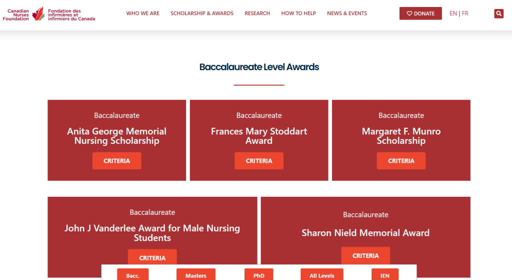 Canadian Nurses Foundation is a non-profit organization that is dedicated to supporting nursing education across Canada. We provide a wide range of scholarships to nursing students who are pursuing baccalaureate, master’s, and Ph.D. degrees. These scholarships are awarded based on merit and can range from $750 to $10,000, depending on the level of study.