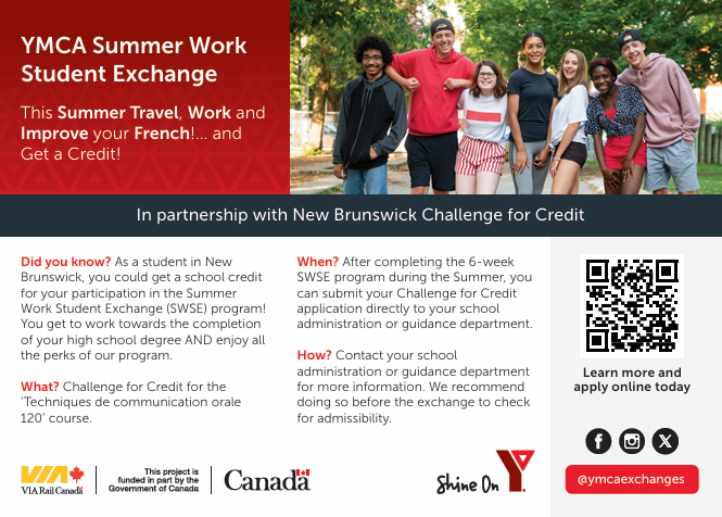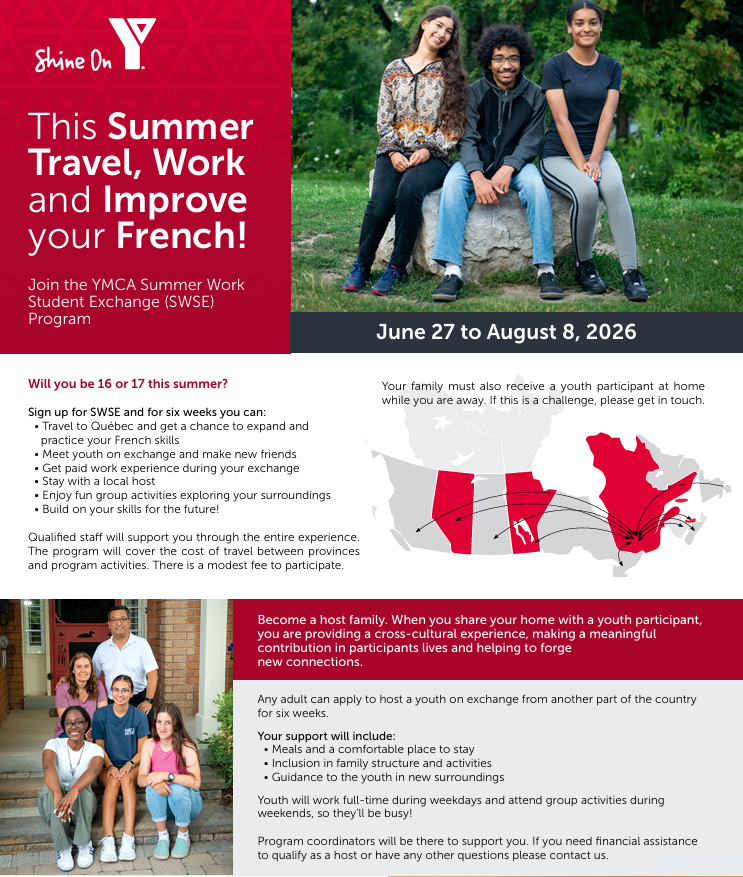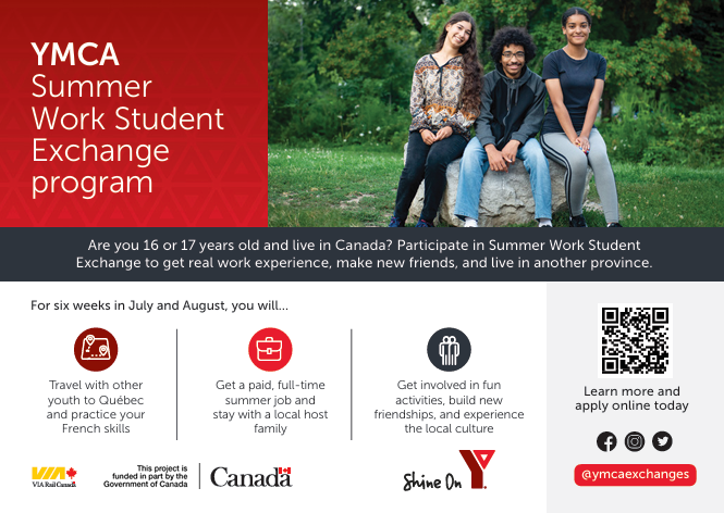 YMCA Summer WorkStudent Exchange 1 April 2026 Filed in: โ๏ธ Academics ๐ Current Students Guidance and Post-Secondary Published April 1, 2026 Last modified April 01, 2026, 1:56 pm